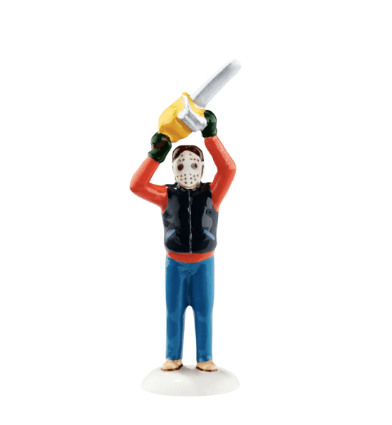 Armed with a chain saw, protected with his hockey mask, Clark is ready to trim the tree.