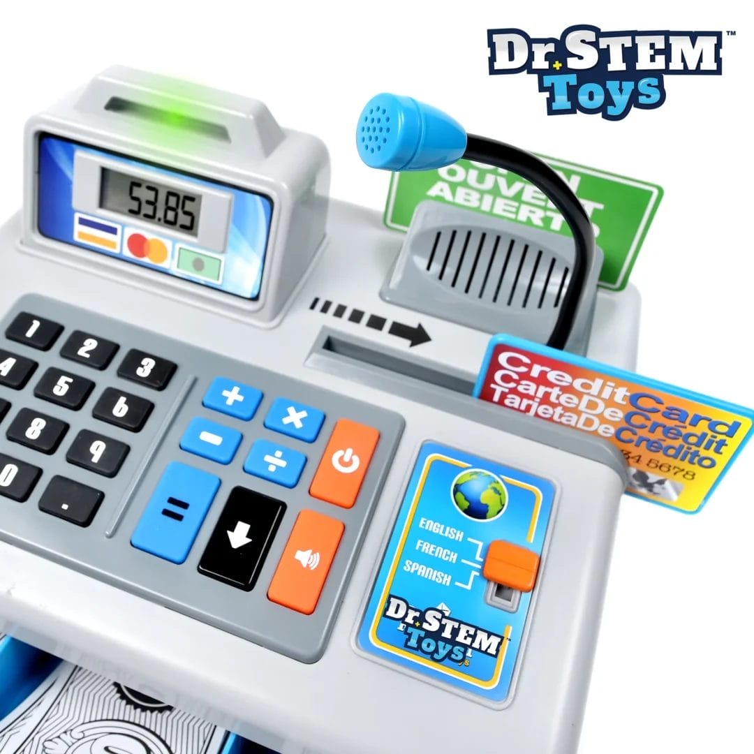 - Interactive Learning: Interactive play cash register with three built-in languages: English, French, and Spanish. Encourages early language development and cultural awareness.