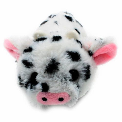 Our cute Carter the Cow wants to be your mechanical friend. The adorable Calf walks and talks with a happy Moo! The soft white and black spotted Cow with pink ears and a distinctive pink nose. Just install 2 AA batteries and turn on his belly switch and this happy cow will be your companion. Collect all of our mechanical Farm Pals.