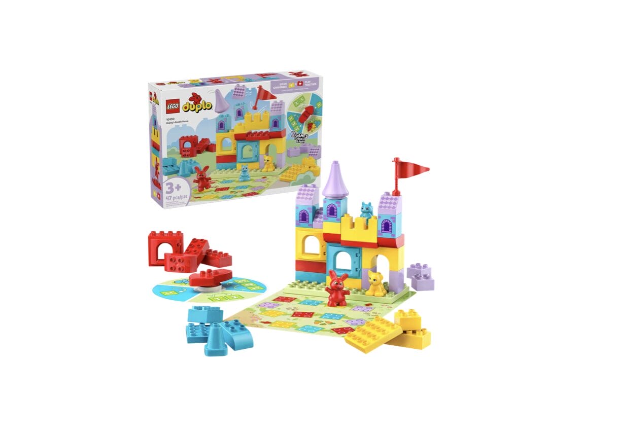 Enjoy hours of family fun with your toddler as you help them learn through play with the LEGO® DUPLO® Hopsy’s Castle Game (10450) 2-in-1 board game. Toddlers embark on a LEGO DUPLO learning adventure, practicing counting and color-sorting skills while playing one of 2 fun games.
