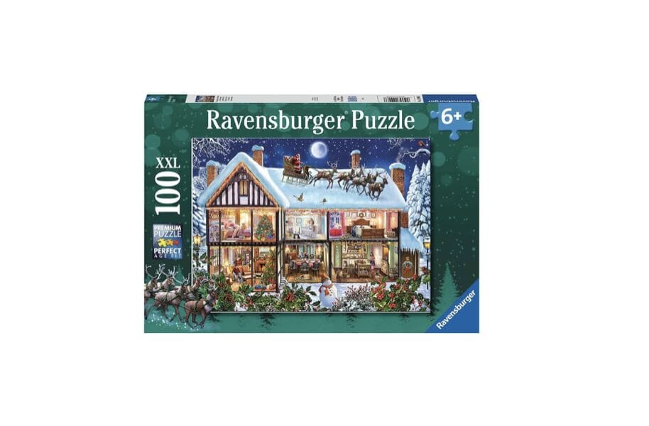 - Charming Holiday Scene: Enjoy piecing this delightful chalet all decked out for the holidays. Featuring warm lamplight, Santa, reindeer, and a beautifully adorned Christmas tree. Traditional family activity to enjoy with boys and girls ages 6+.