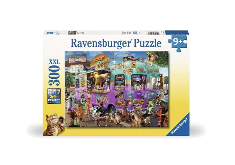 - [About This 300 XXL pc Puzzle] Grab a shake, pounce on a pretzel, or woof down a burger! It’s a dog-eat-dog world (literally!) in this fanciful “Hot Diggity Dogs” jigsaw puzzle!